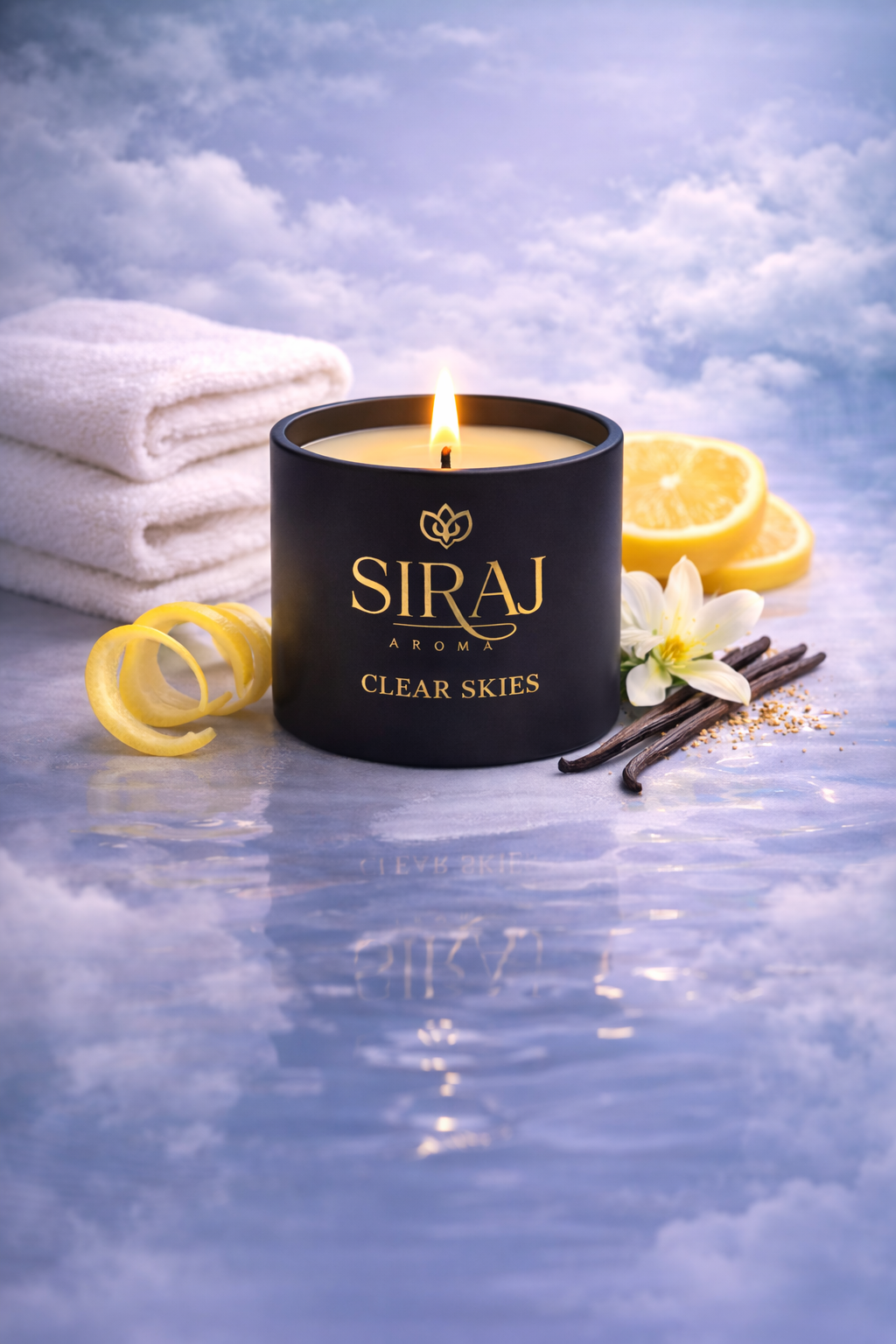 Clear Skies is a breath of fresh air—literally. Ozone and fresh linen blend with bright lemon peel, softened by the warmth of vanilla. This scent brings clarity, lightness, and a peaceful reset to your space. Perfect for clearing your energy or starting a new chapter.